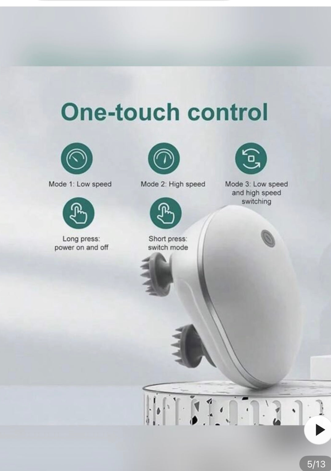 Masseur de cuir chevelu électrique, grattoir de tête portable sans fil avec 4 griffes de massage amovibles, 3 modes réglables, stimulation par vibration de la tête pour une détente profonde, pour la maison, le bureau, les voyages